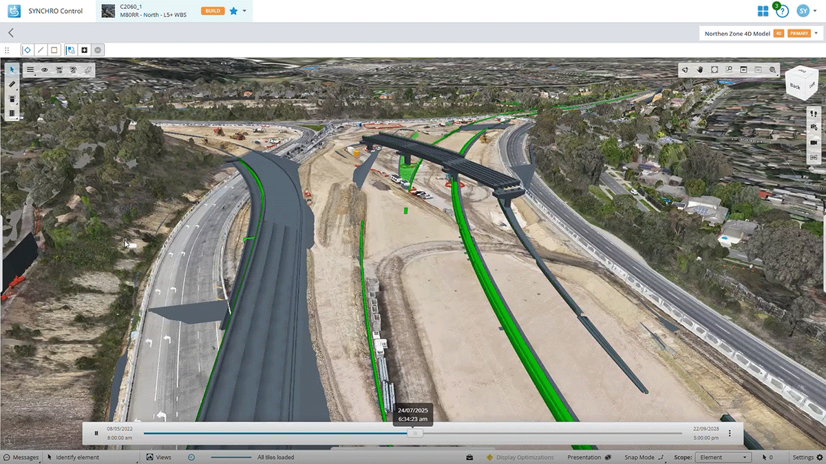 ā€œBentley's SYNCHRO, ProjectWise, and iTwin technology provided the backbone for our 4D Planning digital approach on the M80 Ring Road Completion. Having a live 4D digital twin, automatically updated from CDE and accessible via Bentley Infrastructure Cloud, enabled dynamic planning and collaboration crucial for managing concurrent design and construction, ultimately helping us accelerate traffic management and critical lift approvals by months and with reduced risk.ā€