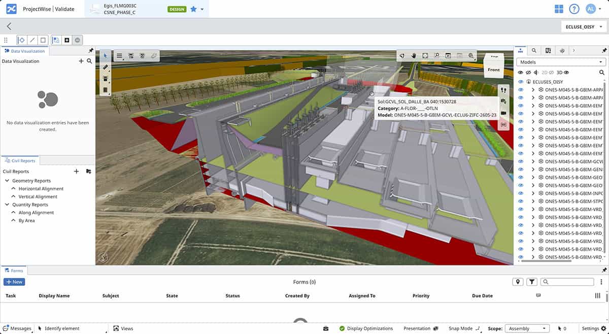 ProjectWise was used to establish a common data environment (CDE). This platform provided 370 users with secure and accessible, up-to-date information, managing over 128,600 documents and 1.2 terabytes of data. This was crucial for maintaining productivity and collaboration, especially during the pandemic and beyond. Through ProjectWise, digital design reviews and automated clash detection enabled the dispersed project team to identify and resolve design inconsistencies efficiently. This digital approach not only improved efficiency and collaboration, but also supported the project’s sustainability goals by enabling the analysis of environmental impacts prior to construction.